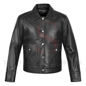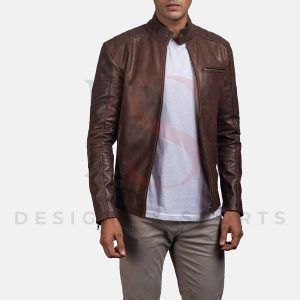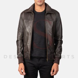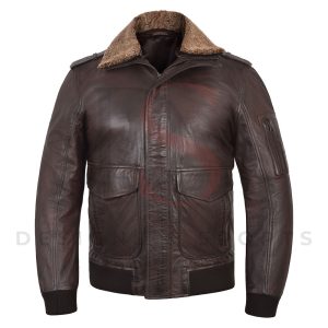 • Dark Brown Shearling Collar Pilot Leather Jacket