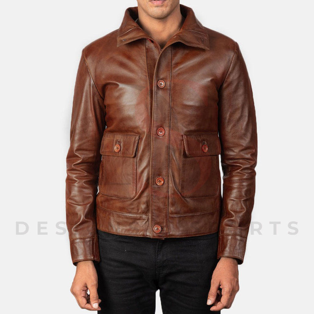 Be the first to review “Columbus Brown Leather Bomber Jacket”