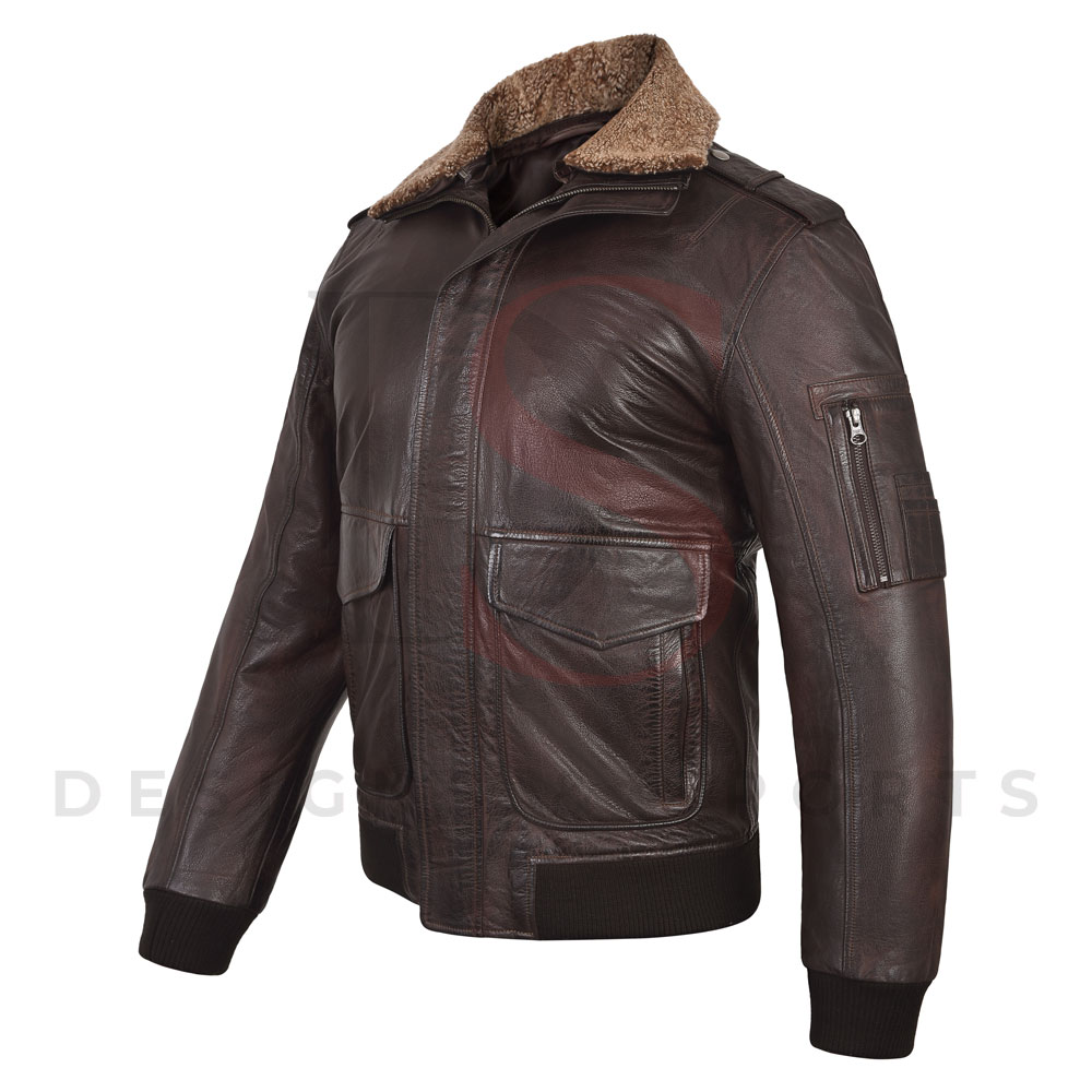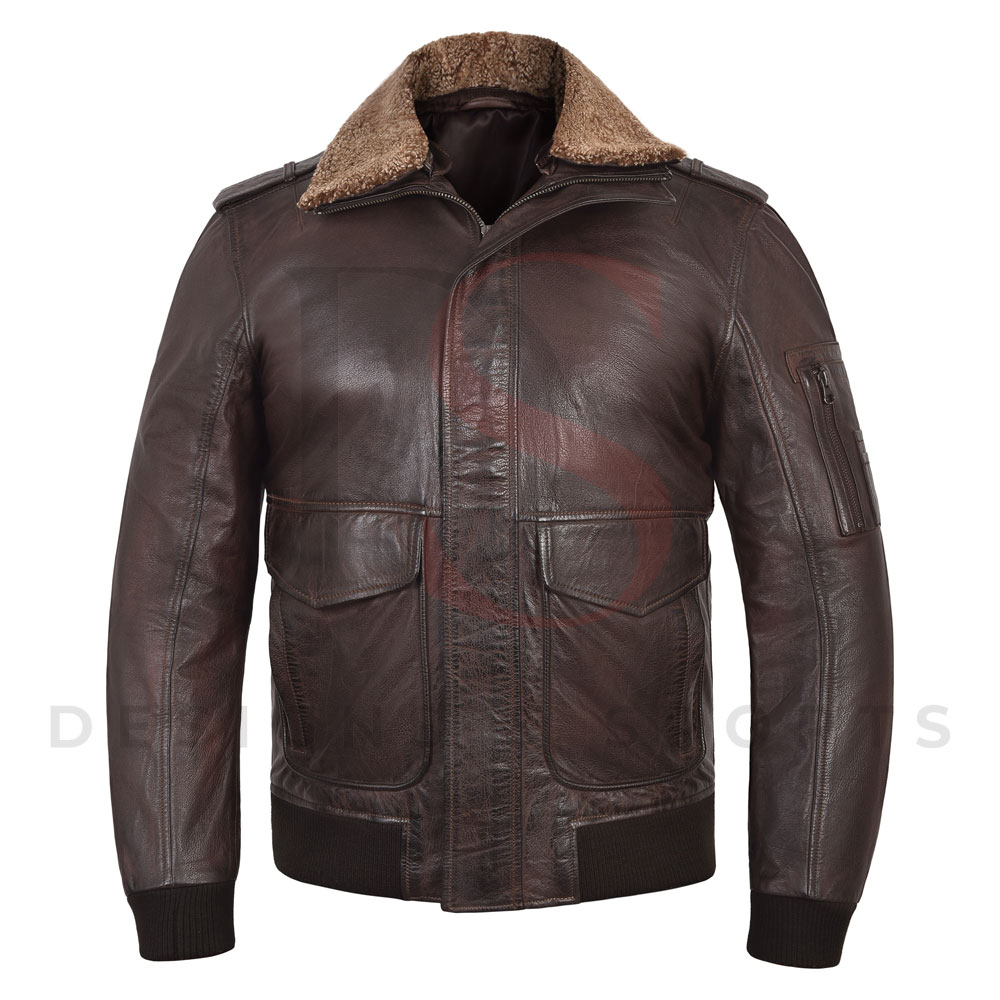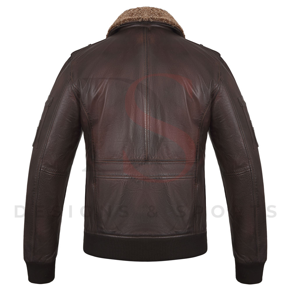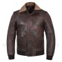 Dark Brown Shearling Collar Pilot Leather Jacket