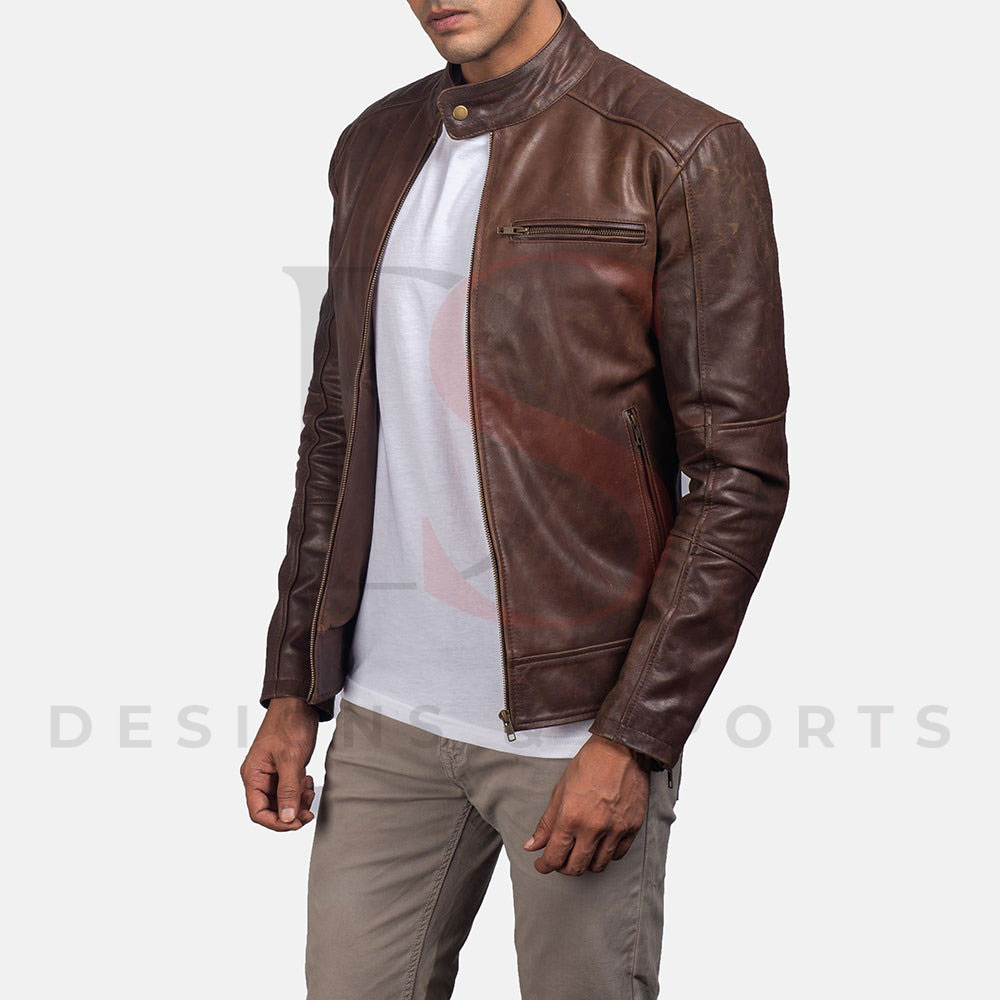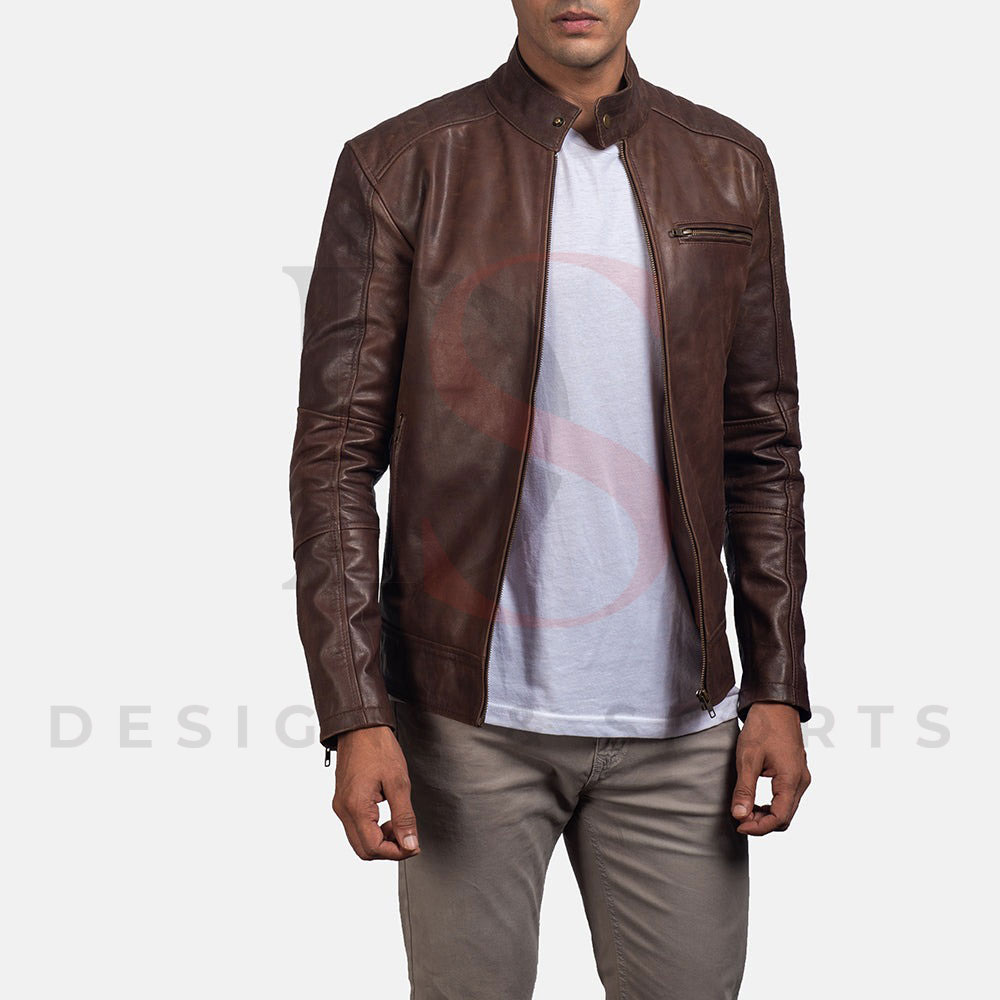 Dean Brown Leather Biker Jacket